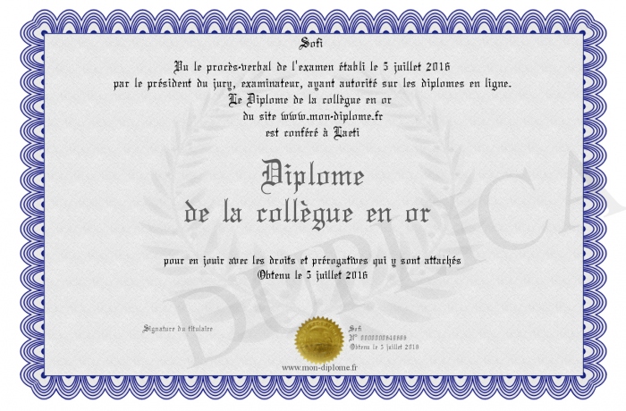 Envoyez par email votre Diplôme de la collègue en or personalisé