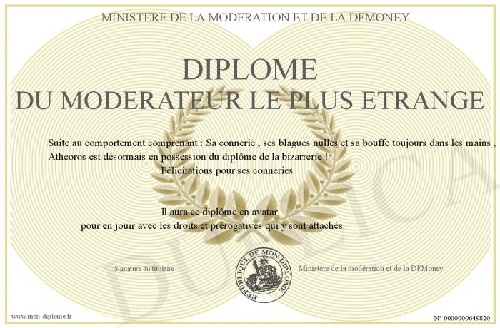 Envoyez par email votre Diplome du modérateur le plus étrange personalisé