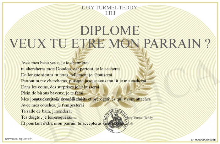 Envoyez par email votre Diplôme veux tu etre mon parrain ? personalisé