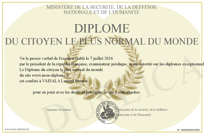 Envoyez par email votre Diplome du citoyen le plus normal du monde personalisé
