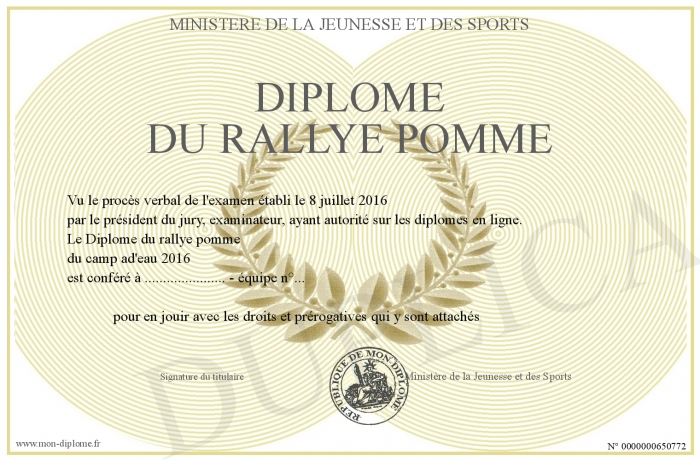 Envoyez par email votre Diplome du rallye pomme personalisé