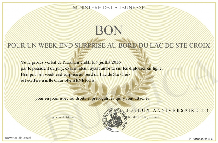 Envoyez par email votre Bon pour un week end surprise au bord du Lac de Ste Croix personalisé