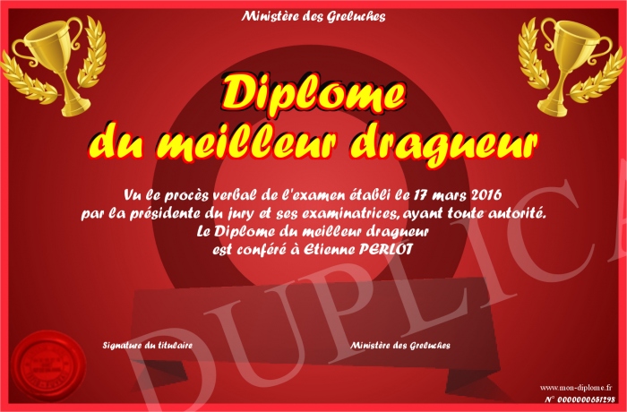 Envoyez par email votre Diplome du meilleur dragueur personalisé