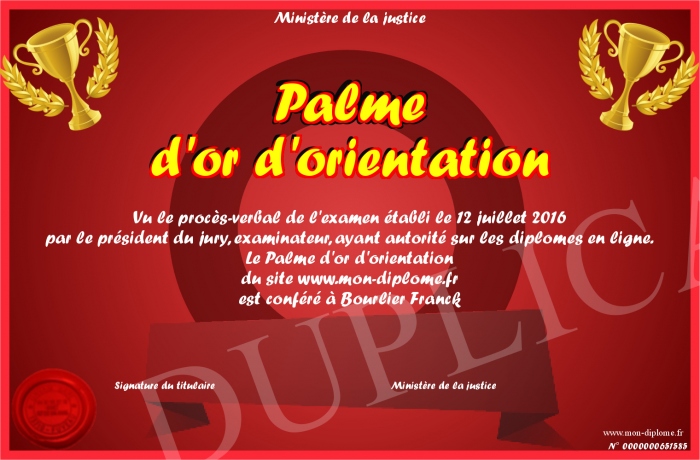 Envoyez par email votre Palme d'or d'orientation personalisé