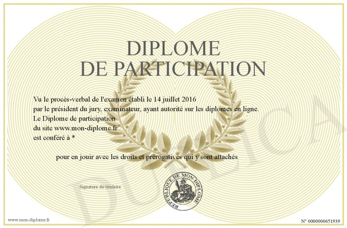 Envoyez par email votre Diplôme de participation personalisé