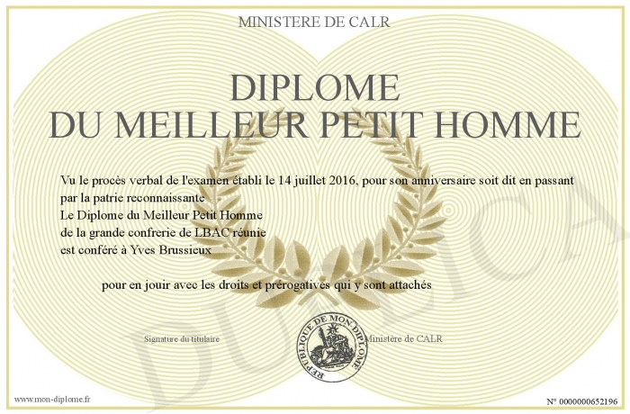 Envoyez par email votre Diplôme du Meilleur Petit Homme personalisé