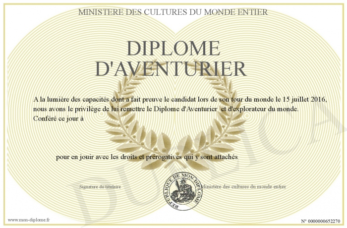 Envoyez par email votre Diplôme d'Aventurier personalisé