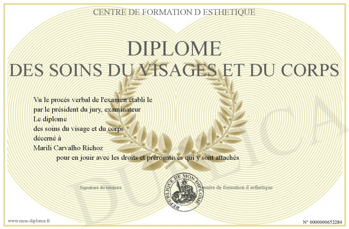 Envoyez par email votre Diplôme des soins du visages et du corps personalisé