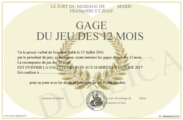 Envoyez par email votre Gage du Jeu des 12 Mois personalisé