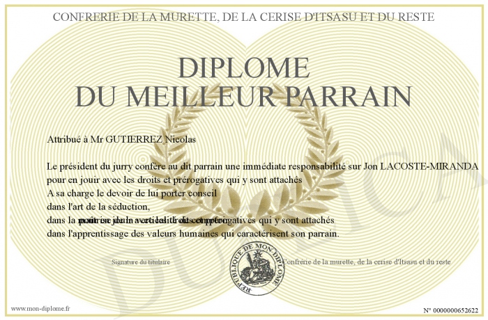 Envoyez par email votre Diplôme du meilleur parrain personalisé
