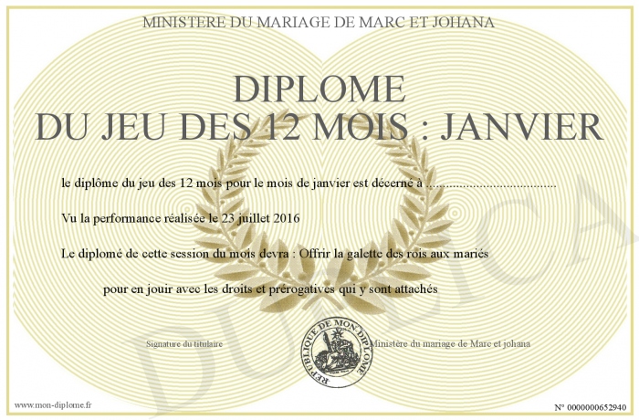Envoyez par email votre Diplôme du jeu des 12 mois : janvier personalisé