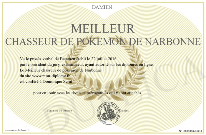 Envoyez par email votre Meilleur chasseur de pokémon de Narbonne personalisé