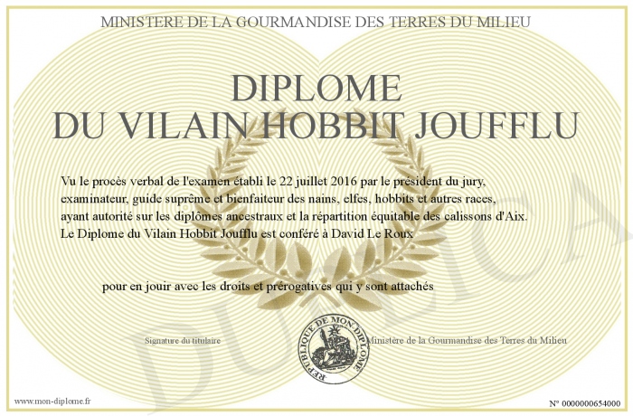 Envoyez par email votre Diplôme du Vilain Hobbit Joufflu personalisé