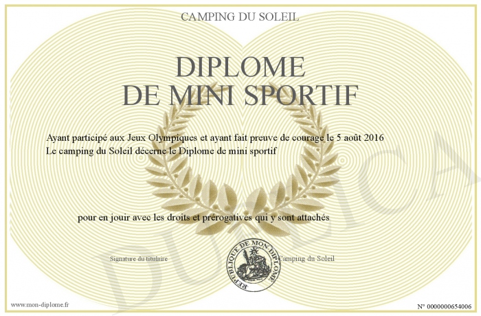 Envoyez par email votre Diplôme de mini sportif personalisé