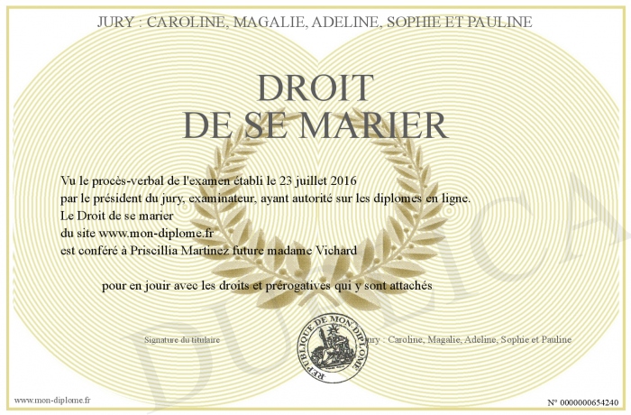 Envoyez par email votre Droit de se marier personalisé