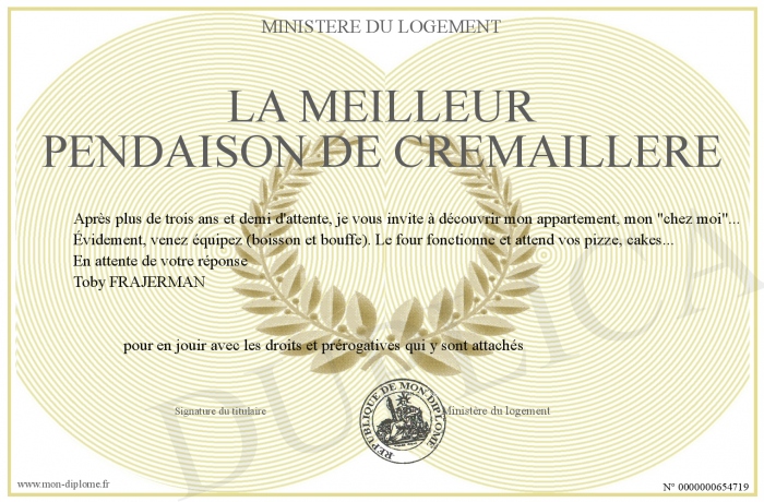 Envoyez par email votre La meilleur pendaison de crémaillère personalisé