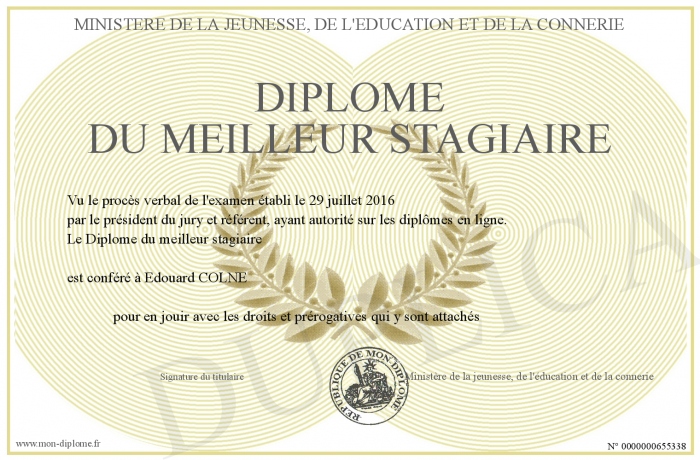 Envoyez par email votre Diplôme du meilleur stagiaire personalisé