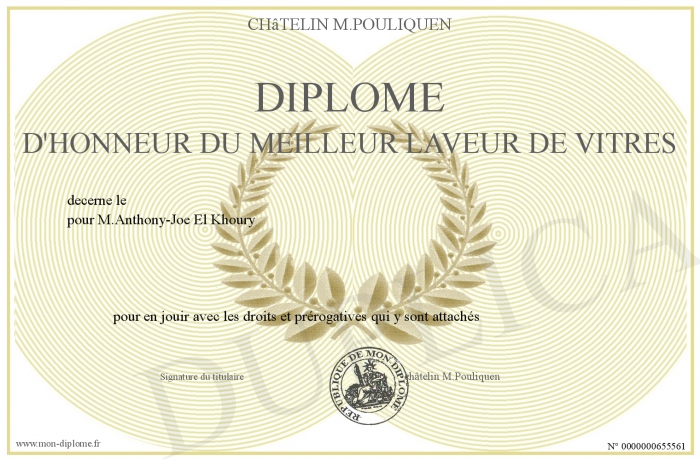 Envoyez par email votre Diplôme d'honneur du meilleur laveur de vitres personalisé