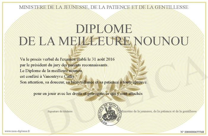 • Diplôme de la meilleure nounou