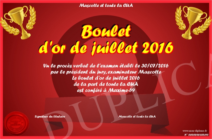 Envoyez par email votre Boulet d'or de juillet 2016 personalisé