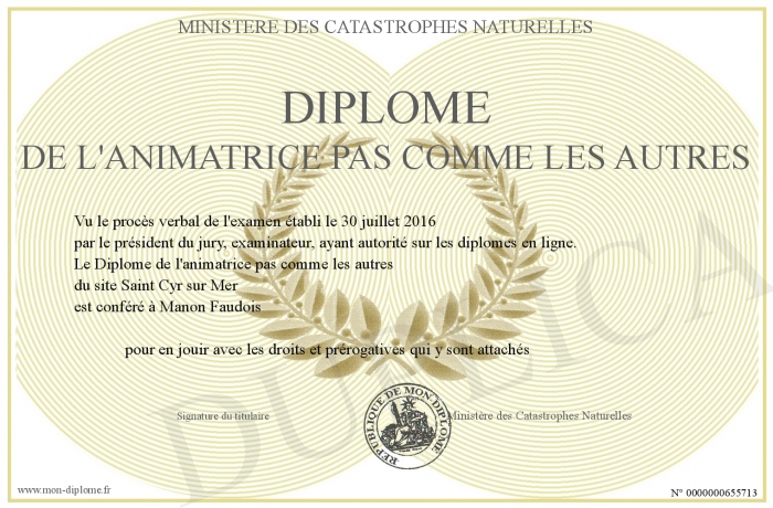 Envoyez par email votre Diplôme de l'animatrice pas comme les autres personalisé