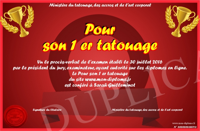 Envoyez par email votre Pour son 1 er tatouage personalisé