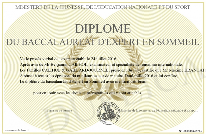 Envoyez par email votre Diplôme du baccalauréat d'Expert en Sommeil personalisé