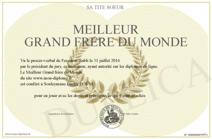 Envoyez par email votre Meilleur Grand frère du Monde personalisé