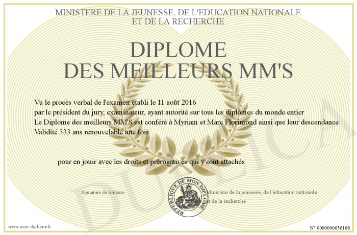 Envoyez par email votre Diplôme des meilleurs MM'S personalisé
