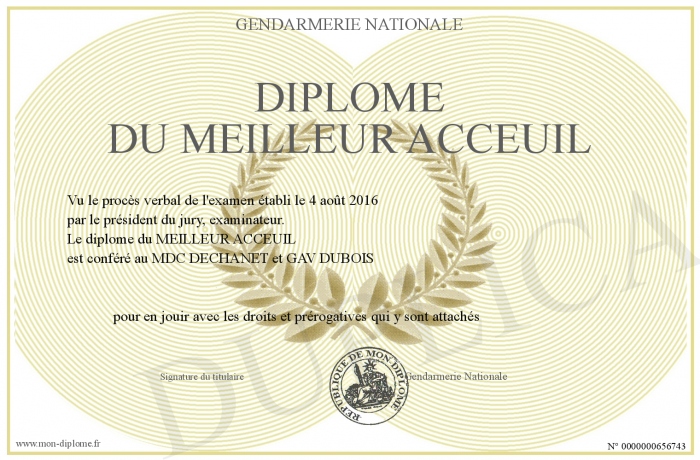 Envoyez par email votre DIPLOME du Meilleur Acceuil personalisé