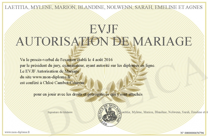 Envoyez par email votre EVJF Autorisation de Mariage personalisé