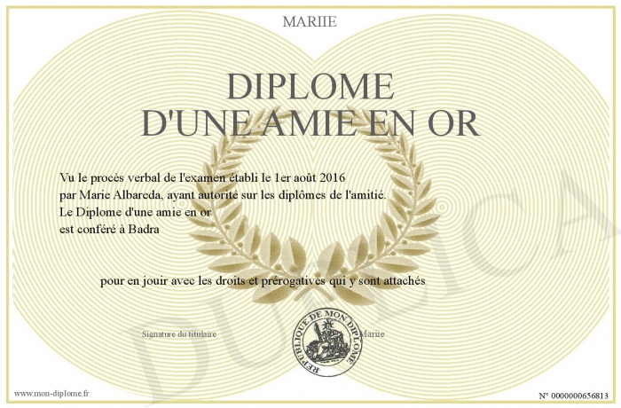 Envoyez par email votre Diplôme d'une amie en or personalisé