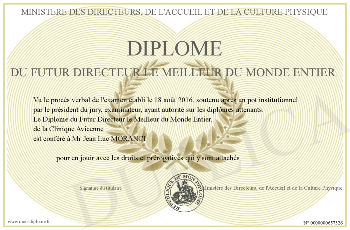 Envoyez par email votre Diplôme du Futur Directeur le Meilleur du Monde Entier. personalisé