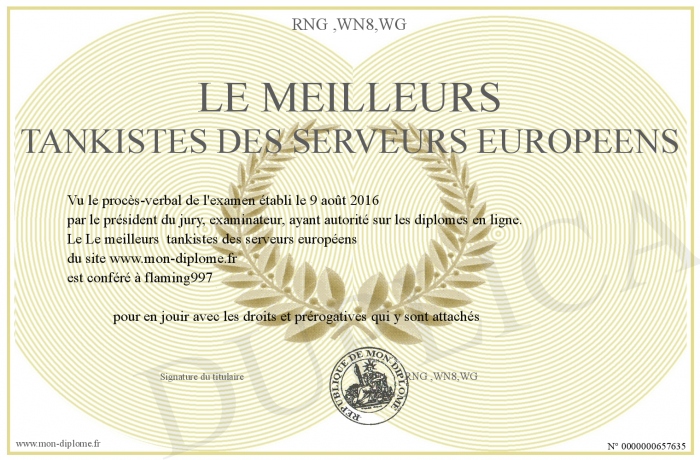 Envoyez par email votre Le meilleurs tankistes des serveurs européens personalisé