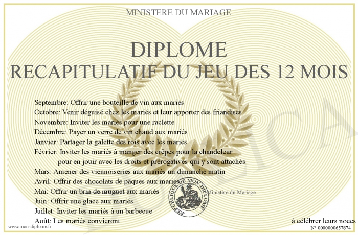 Envoyez par email votre Diplôme RéCAPITULATIF DU JEU DES 12 MOIS personalisé