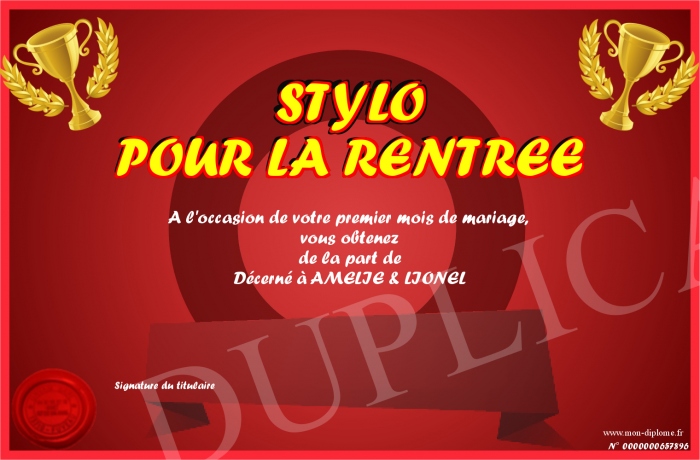 Envoyez par email votre STYLO POUR LA RENTREE personalisé