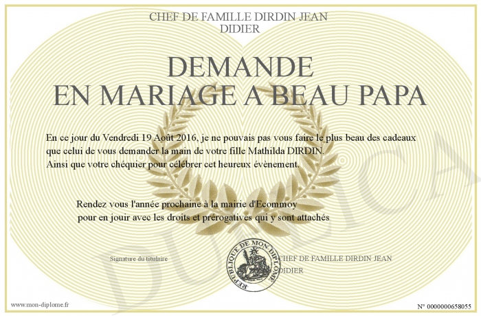 Envoyez par email votre DEMANDE EN MARIAGE A BEAU PAPA personalisé