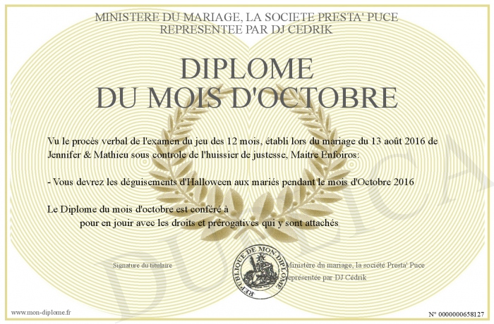 Envoyez par email votre Diplôme du mois d'octobre personalisé
