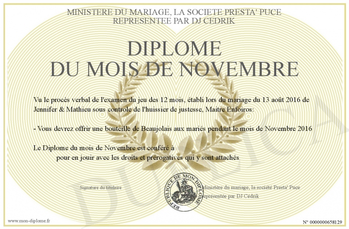 Envoyez par email votre Diplôme du mois de Novembre personalisé