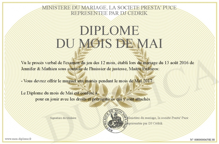 Envoyez par email votre Diplôme du mois de Mai personalisé