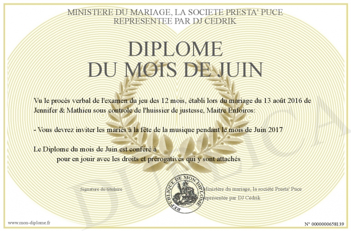Envoyez par email votre Diplôme du mois de Juin personalisé