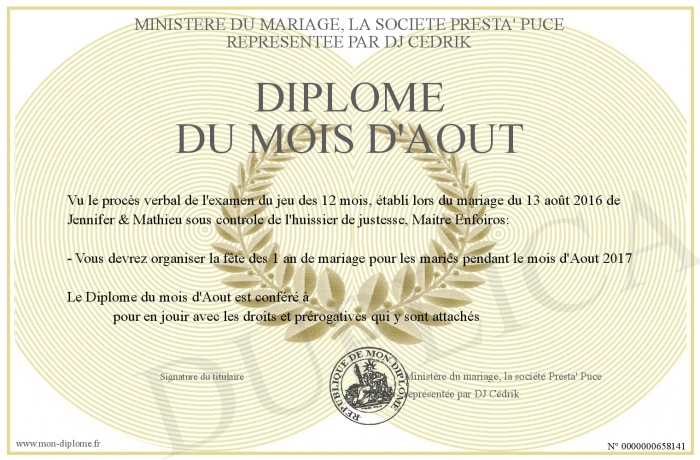 Envoyez par email votre Diplôme du mois d'Aout personalisé