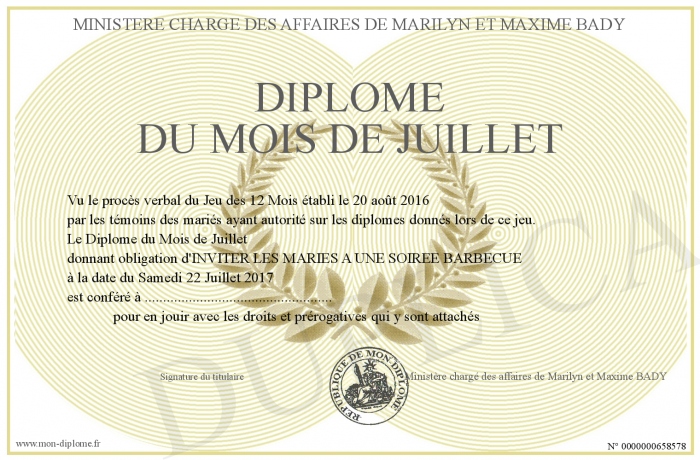 Envoyez par email votre Diplôme du Mois de Juillet personalisé