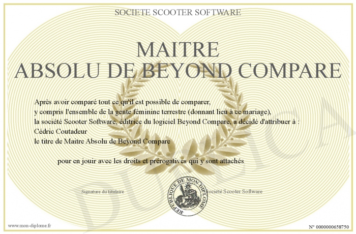 Envoyez par email votre Maitre Absolu de Beyond Compare personalisé
