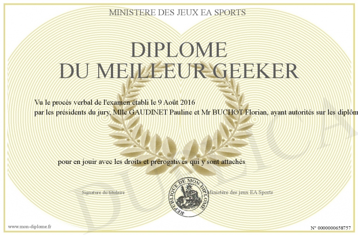 Envoyez par email votre Diplôme du meilleur geeker personalisé