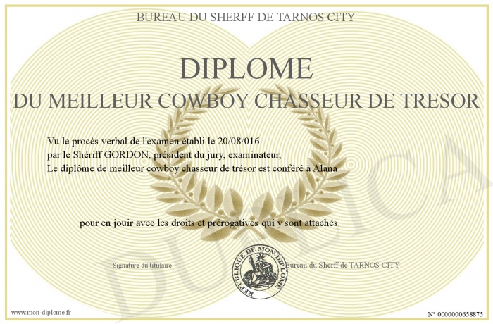 Envoyez par email votre Diplôme du meilleur cowboy chasseur de trésor personalisé