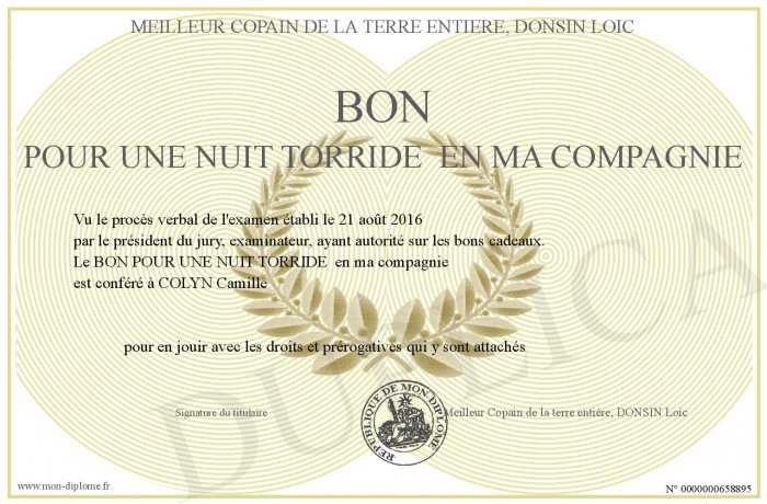 Envoyez par email votre BON POUR UNE NUIT TORRIDE en ma compagnie personalisé