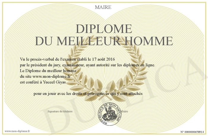 Envoyez par email votre Diplôme du meilleur homme personalisé