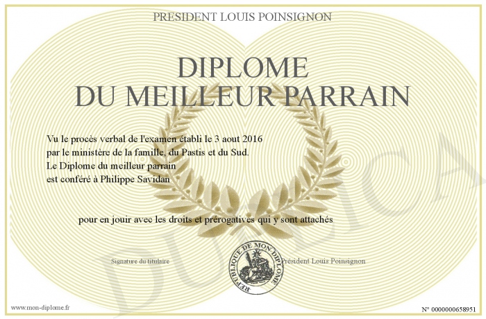 Envoyez par email votre Diplôme du meilleur parrain personalisé