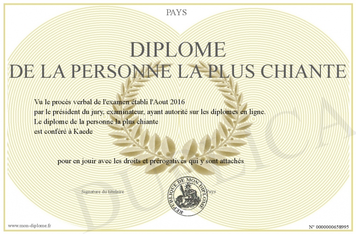 Envoyez par email votre diplome de la personne la plus chiante personalisé